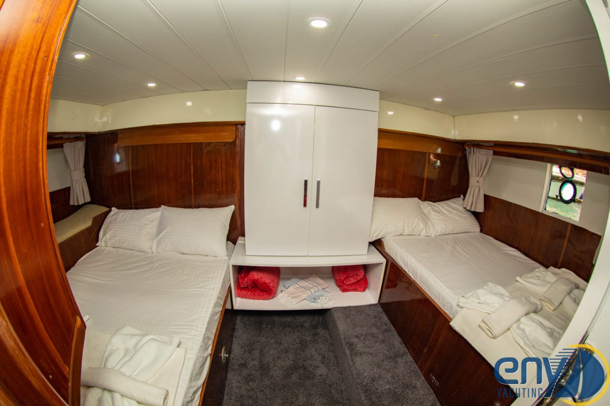 Geniş ön, arka ve üst güverteleri, güneşlenme alanları ve konforlu kabinleri mavi tur severler için özenle dizayn edilmiştir.